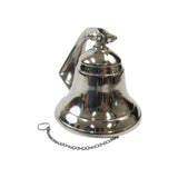 This Polished Aluminum Ship Bell is about 4" tall and 4" wide. It comes with hanging bracket ringer. The bell weighs about 10 ounces. This aluminum ship bell can be easily mounted, making it a great addition to any decor.