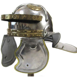Dating back to the Roman days comes the Imperial Italic "G" Roman Helmet, which was worn by Roman centurions. Crafted from 18 gauge steel, it boasts of brass accents, fittings, and designs and is fully wearable. Great for costumes, collections, and reenactments.