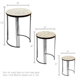 3-piece coffee table set is composed of a small, medium, and large side table that provide a modern, simplistic appearance to any lounging area, Simple yet elegant design allows for multiple placement options, with a neutral appearance that fits well in your living room, office space, and more. Lightweight and stackable, these table nest inside each other to provide space-saving convenience for easy storage, End table trio is crafted with durable iron and medium-density fiberboard material to ensure years of reliable use. Weight Capacity 60 Pounds.