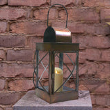 This iron candle lantern is artisan-crafted for quality. It is four-sided and features glass panels for bright light in the darkest night.