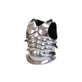 This high-quality steel muscle armor fits a variety of costume ears from Greek to Roman. It is made out of 18 gauge mild steel, polished, and features distinct muscular definition. Leather straps on the top and sides give some adjustability to sizing. Fits up to a 46" chest.