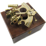 These Sextants by Kelvin & Hughes comes with the wooden box are great to work by Indian artisans. These Sextants are made out of brass & polished antique finish. A sextant is an instrument used to measure the angle between any two visible objects. Making this measurement is known as sighting the object, shooting the object, or taking a sight. A Sextant can also be used to measure the lunar distance between the moon & another celestial object. People got amazed when they can see this kind of product in this modern era. All work is handmade with finest quality of brass and wood box.