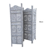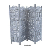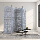 SH 158 Grey - Hand Crafted 4-Panel Wood Divider, Multi-panel Privacy Screen