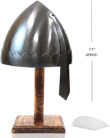 This Norman Nasal Helmet is a classic helmet that was worn throughout Europe. It features a jagged edge steel reinforced front plate and nose guard. It is fully wearable and comes unlined. You can add your own padding to customize the fit or purchase our arming cap. It is a one size fit most, but will accommodate most head sizes up to L.