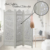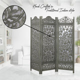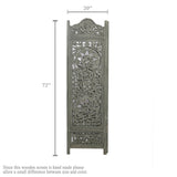 Beautiful carvings throughout this 3 panel room divider can be used for both stunning accent furniture and a functional room screen. It's intricately carved on both sides, making it fully reversible, hides clutter, enhances décor, divides room for privacy, may be used as a headboard, or just about anywhere your creative imagination takes you. Bring home this decorative wide size privacy screens to bring completeness to existing decor.