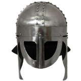 This Armor Helmet Viking is an accurate ornate based off authentic historical research. This incredible helmet is made of hand-forged steel, riveted and contains a nose guard and protection to the sides and back of the neck. It's fully wearable and functional. This is perfect for adding to your collection, to wear to the next Ren Fair or to simply impress your friends!