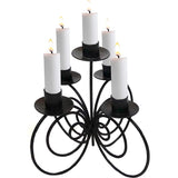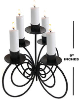 This iron candle holder is capable of holding five lights for bright and long-lasting illumination. It is artisan crafted from solid iron for a sturdy construction.