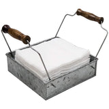 - Paper-Securing Handles – Each metal napkin holder is fitted with wooden covered handles that can lay flat to secure napkins outdoors or used for carrying the tin.