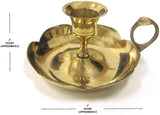 Vintage heavy solid brass candle holder / candlestick holder. The item is about 4 in Length, the plate is 3.25 in diameter. It weighs about 15lbs.