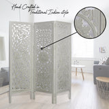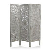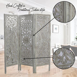 Beautiful carvings throughout this 4 panel room divider can be used for both stunning accent furniture and a functional room screen. It's intricately carved on both sides, making it fully reversible, hides clutter, enhances décor, divides room for privacy, may be used as a headboard, or just about anywhere your creative imagination takes you. Bring home this decorative wide size privacy screens to bring completeness to existing decor.
