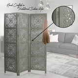 Beautiful carvings throughout this 3 panel room divider can be used for both stunning accent furniture and a functional room screen. It's intricately carved on both sides, making it fully reversible, hides clutter, enhances décor, divides room for privacy, may be used as a headboard, or just about anywhere your creative imagination takes you. Bring home this decorative wide size privacy screens to bring completeness to existing decor.