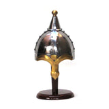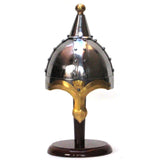 This sturdy but light and airy nasal helmet was a favorite of the Normans who conquered England, Sicily and fought in the Crusades. This helmet is made of 18 gauge steel and is great for costumes and collection. In contrast to other Norman helmets, this one has a brass nasal guard.
