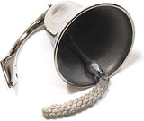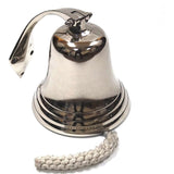 This nautical solid aluminum ship bell has a diameter of approximately 7" tall and is 7" wide. The chrome finish nautical ship bell includes a hand knotted lanyard and a wall bracket for mounting to any surface. This solid cast aluminum ship bell is 100% handmade. This bell is sure to be heard through out your home or office!