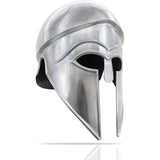 With its distinctive shape, the Italo Iron Corinthian Helmet is perhaps one of the most classic and identifiable helmets of history. The iconic helm of the Spartan warrior, this helmet was favored by many Greeks because of its protective abilities. This simple helmet features a rounded top that is perfect for deflecting blows off of the top of the head, while a small protrusion at the back helps to protect the neck. The front of the helmet features a shallow brow and embossed lines above the face. Long cheek-guards protect the face, while leaving an open T-shaped section of the helmet, where the warrior can see and breathe through the helmet. This particular helmet is made from quality metals and features an impressive polished iron finish. Adding the Italo Iron Corinthian Helmet is a great way to add a touch of authenticity to any Greek hoplite or warrior look, and the helmet is also an instant collectors item that is sure to look great in any enthusiasts collection.