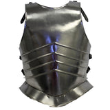 This Armor Jacket is made of 18 gauge steel and fully wearable. The leather straps on the sides and shoulders make for some adjusting, but it generally fits up to a 46" chest. This armor type was worn by knights and other medieval warriors on the battlefield and provided excellent protection. Perfect for a medieval or Renaissance ensemble, be it for media productions, re-enactments, or other costume events. Each piece is hand-made to give you a truly authentic, unique collector's item.
