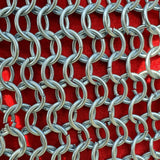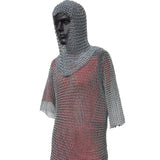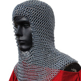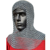This Iron Chain Mail Hood is made with battle-ready 4 in 1 Interlocking steel rings that are linked together for the strongest sword-proof armor coif. Each steel ring is 10mm in diameter of 8 AWG carbon-infused stainless steel alloy. Each ring is forged by authentic metalsmiths to produce this genuine Medieval Armor Coif. The pattern of links effectively doubles the steel Gauge armor capacity. It covers the head (top and back), the neck, and the upper chest area. Chain mail armor is a highly valued piece of armor. It was very expensive in medieval Europe because of its rarity and production expense. However, many battle commanders, nobility, and wealthier soldiers were willing to acquire chain mail armor to increase their survivability. It protects the body from swords, spears, knives, impact weapons, and projectiles, while still providing full and equal coverage. This chain mail coif is genuine armor that can be worn for the purpose of protection.