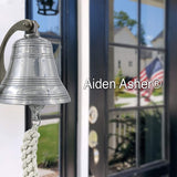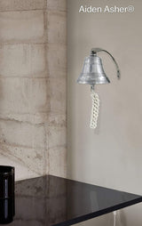 This nautical solid brass ship bell has a diameter of approximately 5" tall & 6" wide. The Gold finish nautical ship bell includes a hand knotted lanyard and a wall bracket for mounting to any surface. This solid cast brass ship bell is 100% handmade. This bell is sure to be heard through out your home or office!