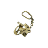 This nautical-themed sextant key chain is both adorable and functional, featuring a sailing boat silhouette key fob. Crafted from solid brass, this key chain is as beautiful as it is durable and functional. A knurled knob allows you to easily and securely add or remove keys from the ring.