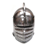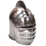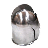 This beautiful Medieval Italian Knights Helmet is a fantastic example of the style worn by the Italian knights in the 15th century. It was designed to provide maximum protection in battle and during jousts. The full-face design and corrugated face mask left little room for blows to connect. A ridge runs from the front to back on top of the helmet. The visor can be flipped up when not in use.