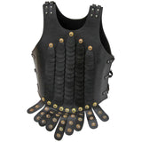 This stunning Faux Leather Armor Jacket offers a predated and historic look.This is finished with utmost care and attention to ensure its alluring shape and elegant design. Hailing from the days of the Roman Empire, the cuirass was an important piece of armor that protected the front of the torso. The Leather Cuirass is reflective of the period and is crafted of leather with care and precision. It is also complimented with brass accents and is fully wearable. A great piece to complete any costume ensemble.