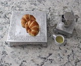 Lend a look of elegance and finesse to table settings with this metal galvanized cake stand. Featuring a simple design, this stylish cupcake stand is a perfect combination of minimalist style and functionality. The tray-style, round top design of this cupcake stand allows you to easily arrange an assortment of cupcakes and other baked items. This metal is galvanized which ensures lasting functionality as it is resistant to rust, corrosion or weather-induced damage to offer reliable usage. Equipped with a sturdy, wide base, this stand resists topping and can be safely placed on a flat table surface. Made from premium grade metal, this stand flaunts a hammered texture that lends an antique look to the design aesthetics.