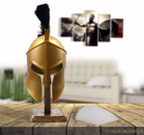 This replica of King Leonidas's helmet from the movie "300" is siginificantly less priced than the official replica we carry yet it still carries high quality materials. It is made out of a plated antiqued brass 18 gauge steel and features a similuted black horse hair plume. It is fully wearble and is perfect for costumes and events. It also makes an impressive display piece.